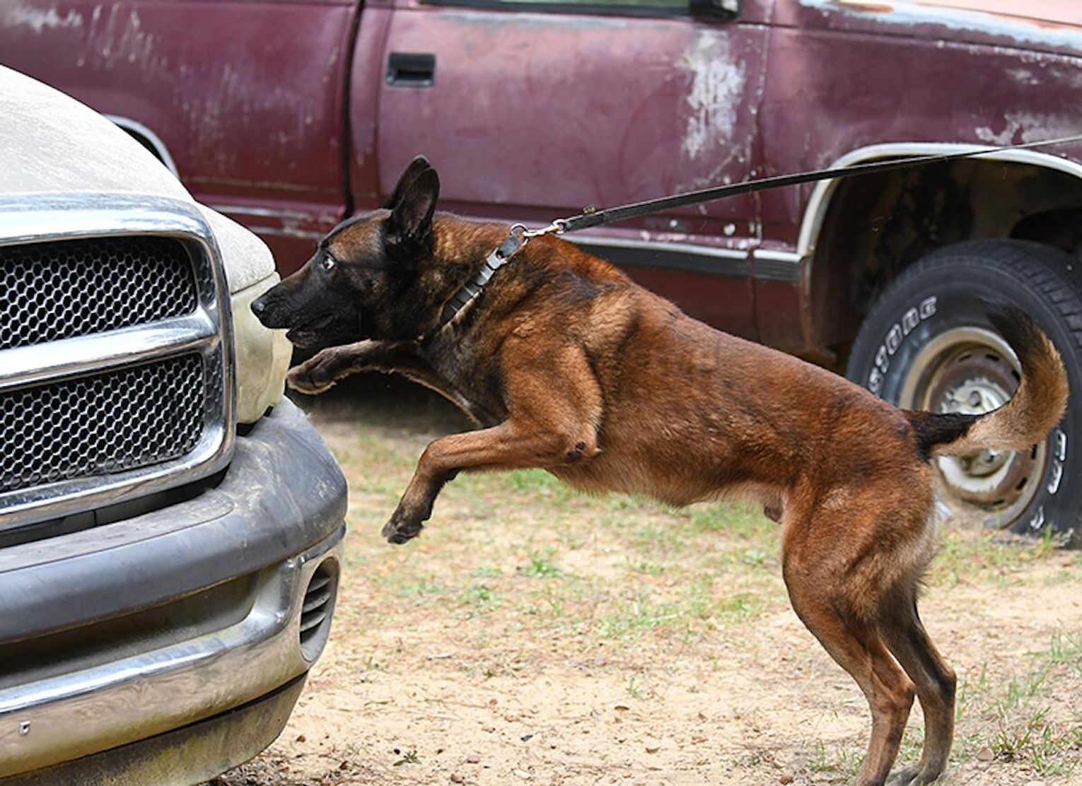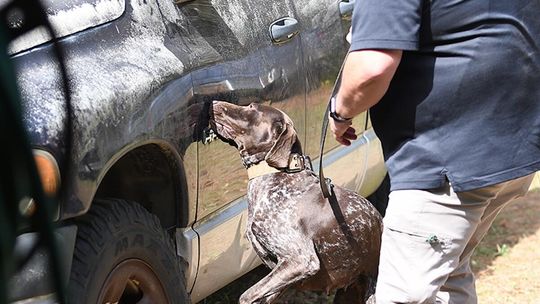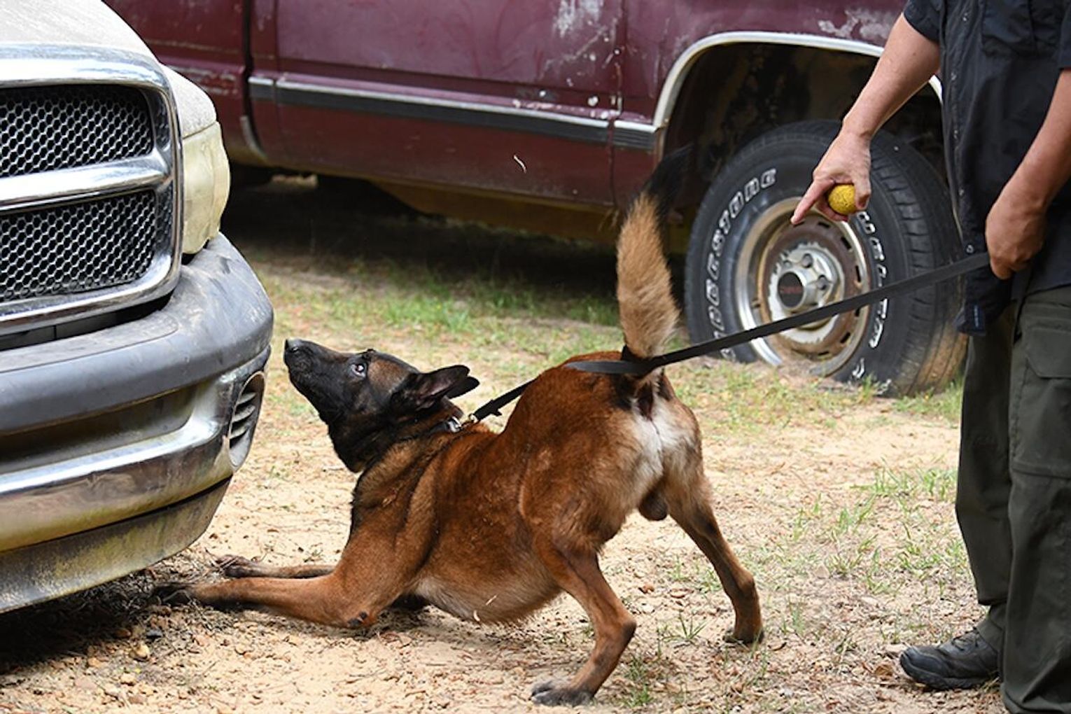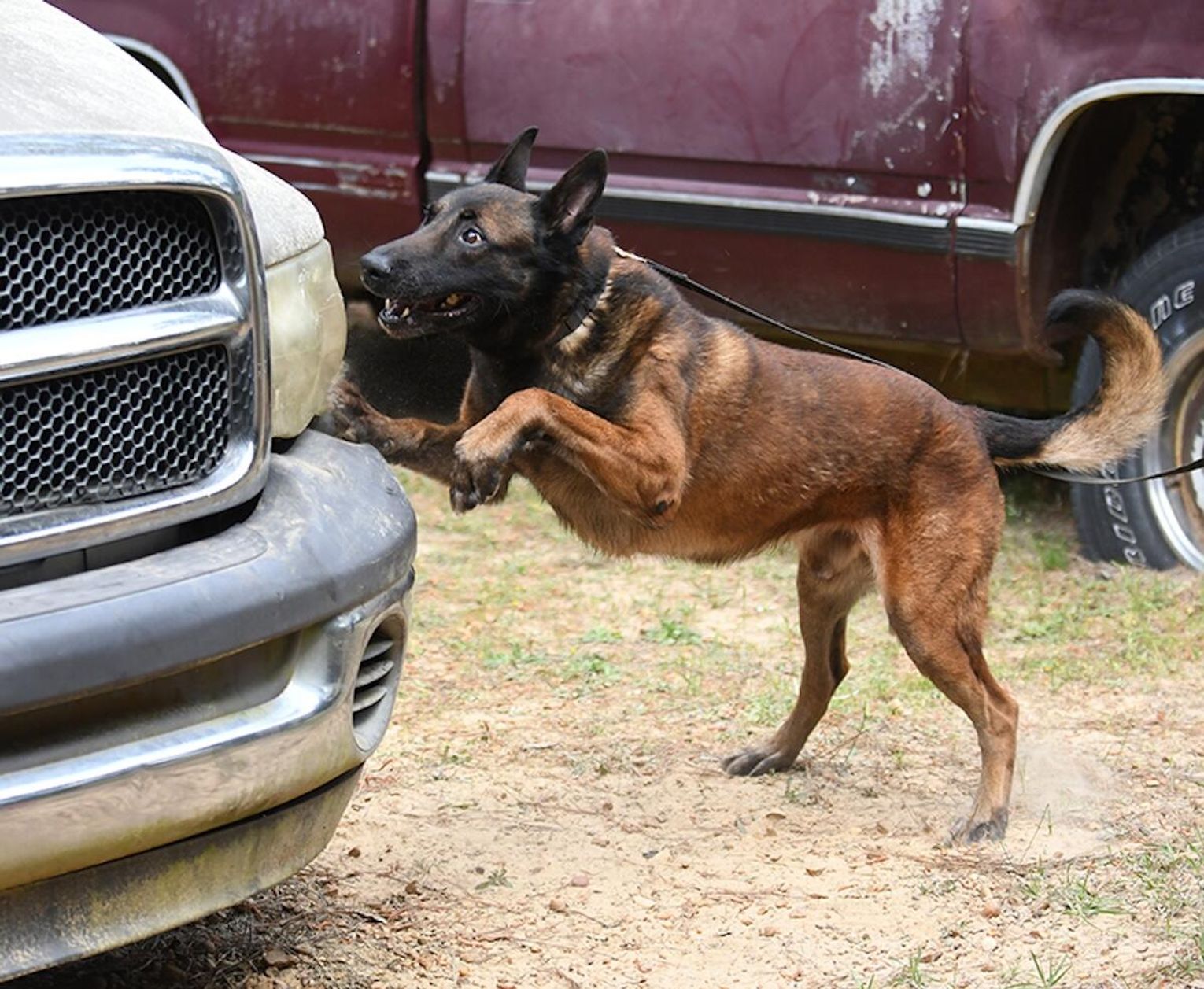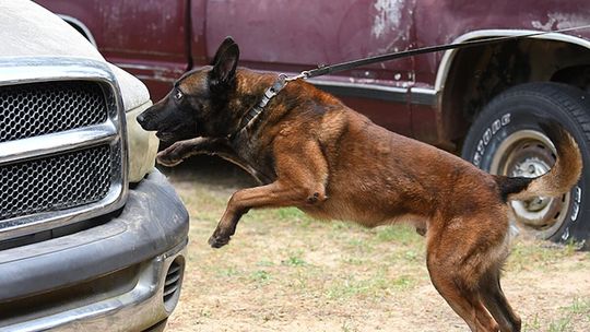 “In the morning, we conducted all of the drug work, which included the dogs and their handlers having to locate marijuana, cocaine, methamphetamine and heroin,” Husbands said. “In the room searches, the teams had to search three rooms where narcotics were hidden in two of the three rooms and then they had to search four vehicles with narcotics hidden in two of the four.”