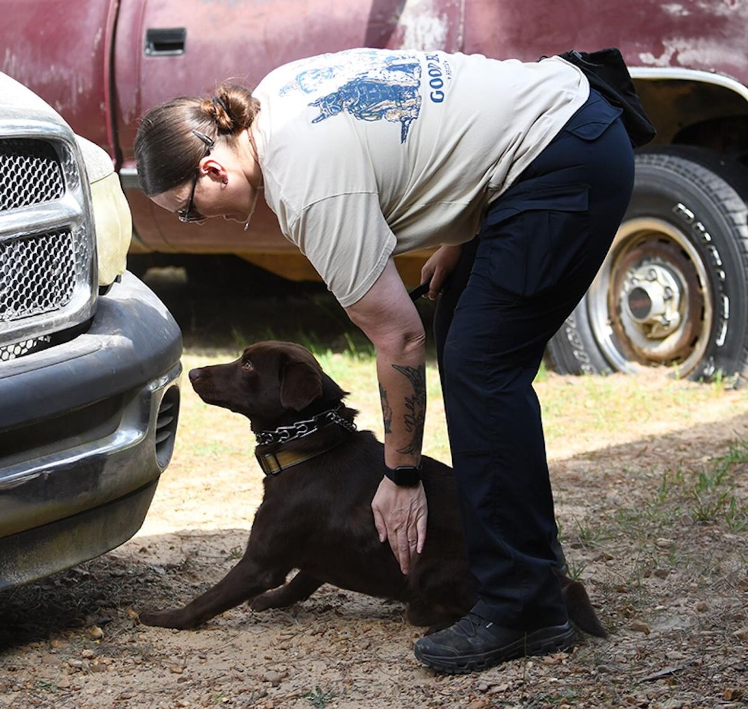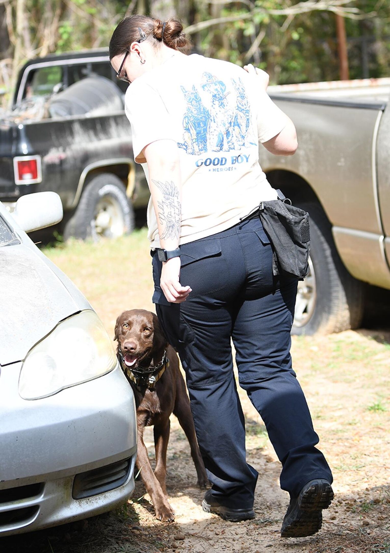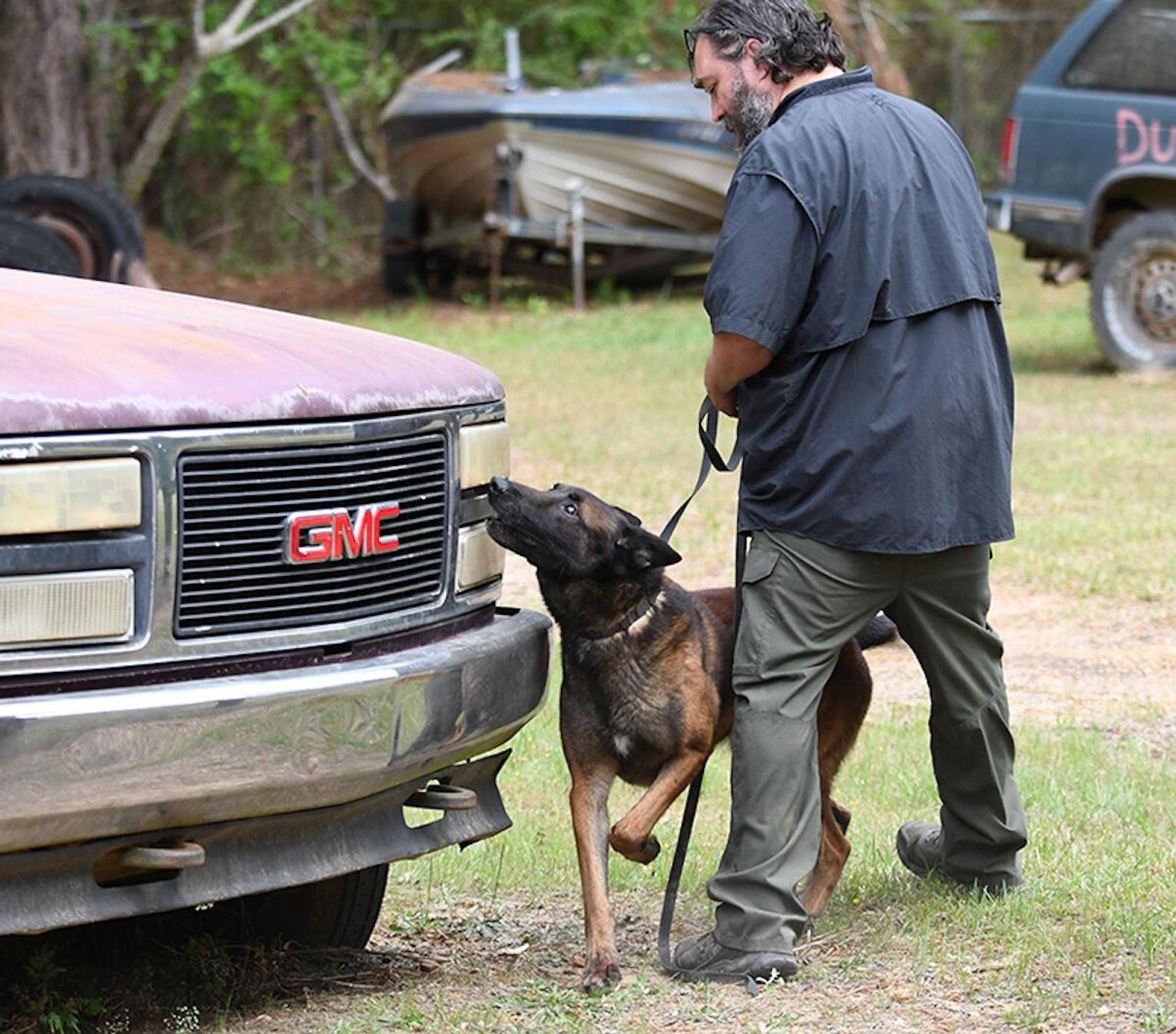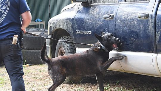 “In the morning, we conducted all of the drug work, which included the dogs and their handlers having to locate marijuana, cocaine, methamphetamine and heroin,” Husbands said. “In the room searches, the teams had to search three rooms where narcotics were hidden in two of the three rooms and then they had to search four vehicles with narcotics hidden in two of the four.”